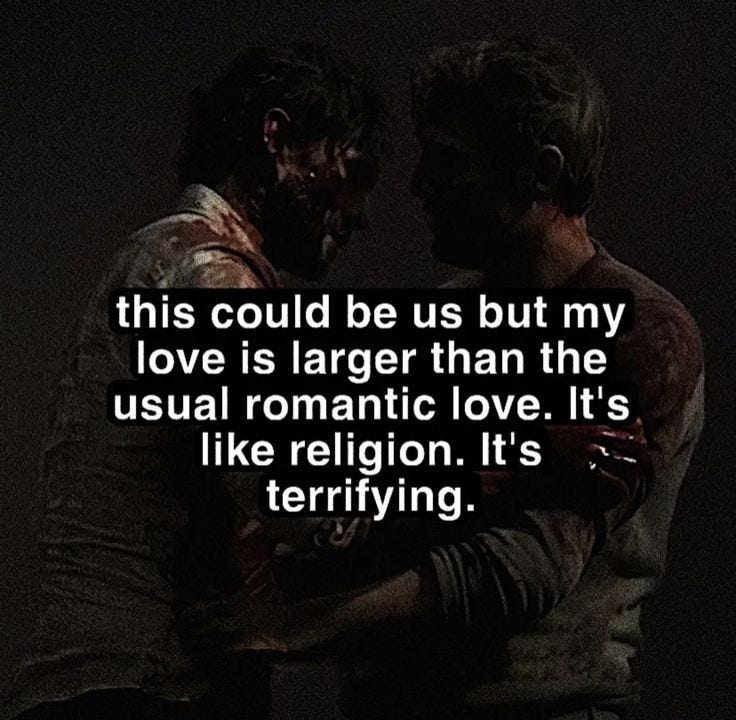 Como alguien cuyo deseo eternamente frustrado será el de conocer a un vampiro cuya hambre y obsesión por mi sea tan mortificante que el simple aroma de mi sangre lo haga querer vomitar profusamente, y mi hiper fijación más reciente con la serie de interview with the vampire, un tema del que podría hablar incesantemente y planeo hacerlo, es el amor como algo disruptivo, tan obsesivo y desgarrante que no cabes en tu pellejo y tener a la persona a meros centímetros de ti no es suficiente, la consumación de ese sentimiento es la fusión entre dos almas que se atormentan con lo mucho que no pueden dejar de amarse. Es un sentimiento bello y desesperante y pienso tratar de entenderlo mejor a través de este ensayo, y espero que les ayude tambien.